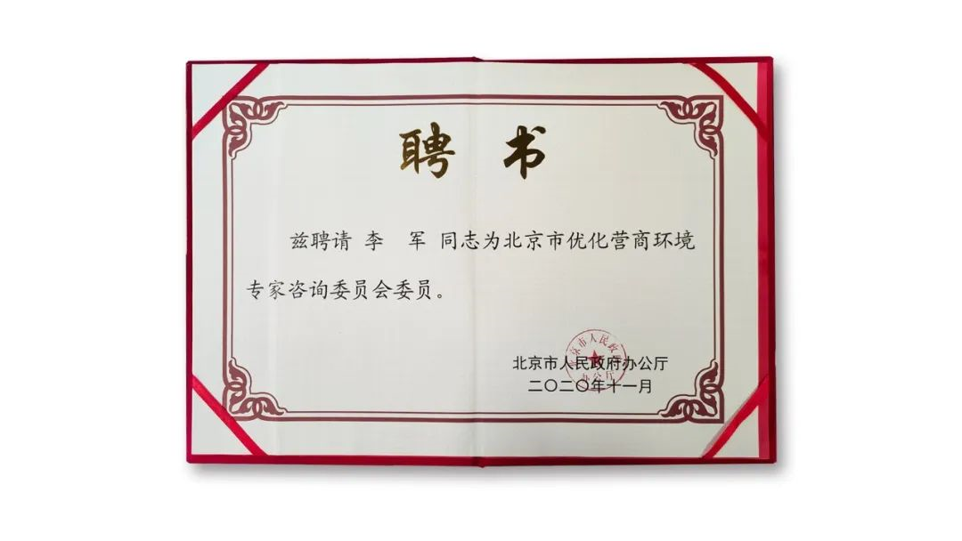 九游老哥董事长李军受聘为北京市优化营商情形专家咨询委员会委员